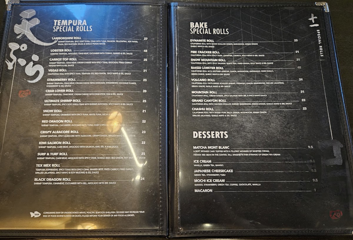 Tempura asparagus, spicy tuna with spicy crab, seared beef, fried carrot, fried garlic, grilled jalapeno, spicy mayo, soy mustard and eel sauce.